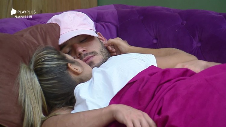 Lucas Viana e Hari Almeida discutiram na noite anterior, mas já fizeram as pazes na tarde desta sexta-feira (1º). O casal se beijou e dormiu juntinho na sala da sede.
