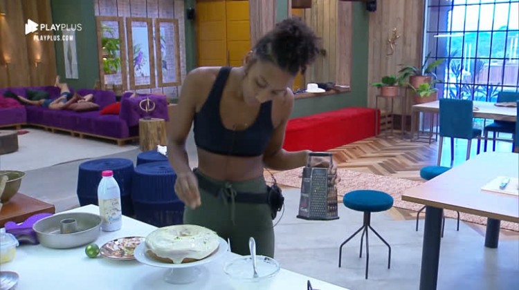 Nesta segunda-feira (11), Sabrina Paiva fez um delicioso bolo com raspas de limão para os peões. A peoa mostrou talento como confeiteira!