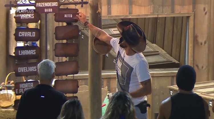 Diego Grossi, o mais novo Fazendeiro da semana , tão logo conquistou o chapéu e já começou a trabalhar. Na madrugada desta quarta-feira (13), na oficina da sede, o peão dividiu as tarefas entre os demais participantes.