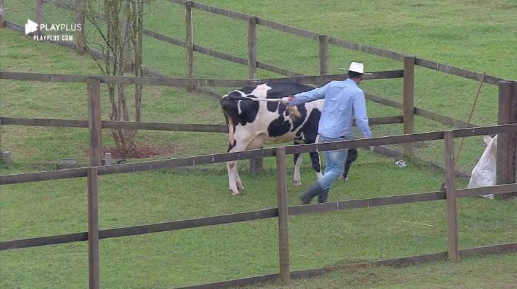 Diego Grossi acordou cedo, neste domingo (24), para cuidar da vaca. Porém, o peão levou uma 'canseira' do animal, que ficou parado no meio do caminho.