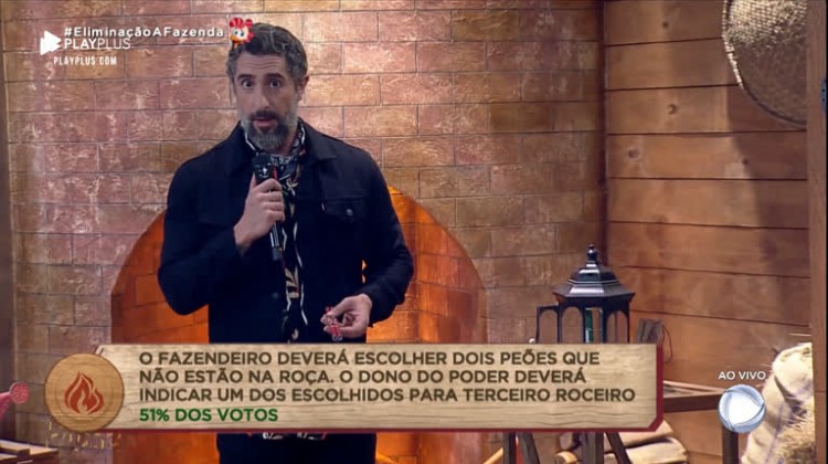 Durante o programa ao vivo desta quinta-feira (21), o apresentador Marcons Mion revelou qual será o poder da Chama Vermelha que está no Lampião. A opção mais votada, com 51% da preferência do público, determina que o Fazendeiro deverá escolher dois peões que não estão na Roça e que o dono da chama deve indicar um dos escolhidos para terceiro roceiro. Assista!