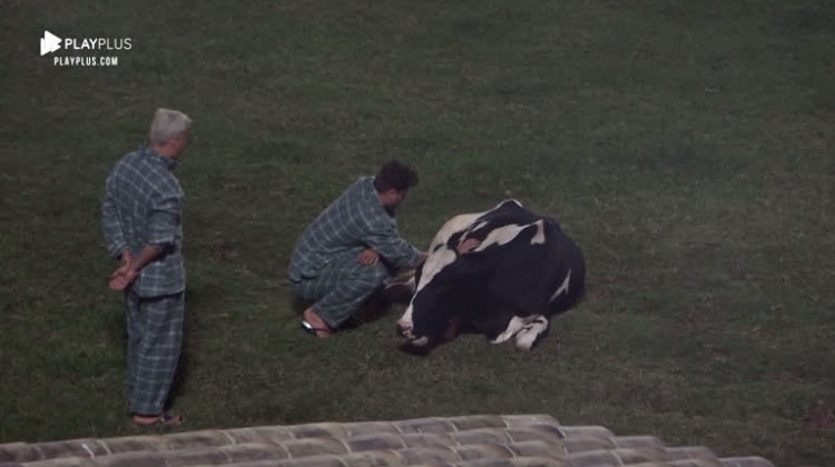Guilherme demorou para dormir. Na companhia de Viny, o peão sentou e começou a fazer carinho na vaca Laika.