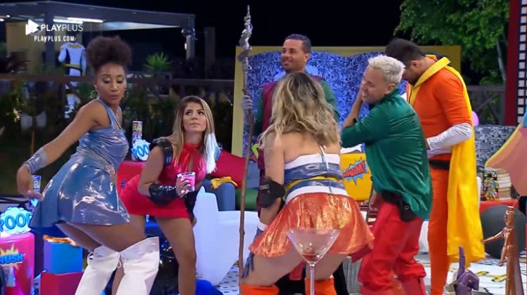 Hari, Thayse e Sabrina requebram no funk em noite de festa na sede. O trio estava um tanto animado. Viny, Diego e Rodrigo também se divertiram. Somente Lucas, que terminou recentemente o namoro com Hari, não fez tanta questão de participar da folia.
