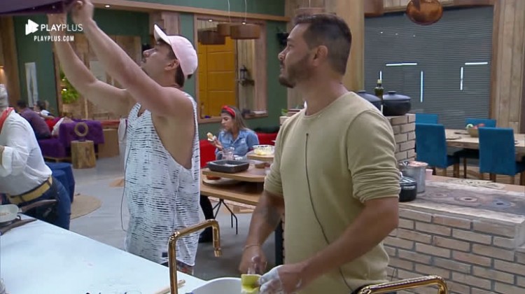 Na cozinha da sede, Rodrigo Phavanello chamou Lucas para uma conversa.