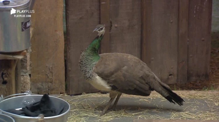 Na madrugada desta quarta-feira (13), a baia recebeu uma visita ilustre. Uma pavoa 'invadiu' o lugar chamando a atenção de Viny e Guilherme. Lucas, que já estava dormindo dentro do espaço, não notou nada, mas, segundo Guilherme, a ave teria entrado para pegar biscoito de polvilho dos participantes.