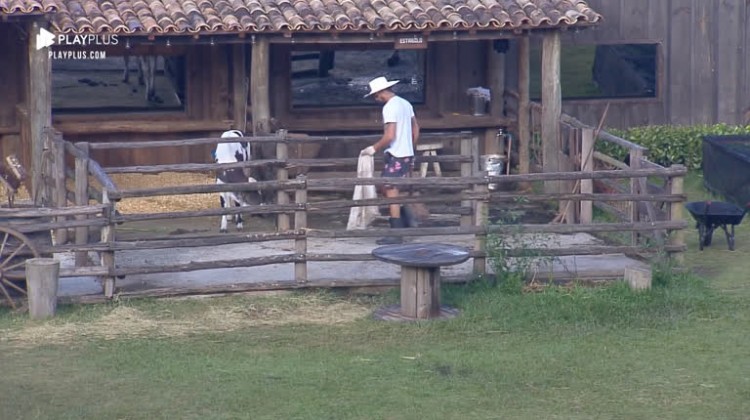 Primeiro finalista da temporada , Diego Grossi também foi o primeiro a acordar neste sábado (7). Assim que o aviso sonoro tocou, o peão se levantou, se vestiu, tomou café e desceu para cumprir as tarefas com os animais. Diego limpou o estábulo onde estava o bezerro Chiquinho e depois tirou leite da vaca. Quer saber o que acontece o tempo todo em A Fazenda ? Acesse PlayPlus e acompanhe tudo 24 horas ou assista à íntegra dos programas.