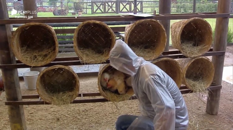 Rodrigo Phavanello enfrenta chuva para coletar ovos das galinhas
