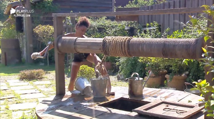 Sempre muito animada, Sabrina cantou Já é Sensação , sucesso do DJ Malboro, e mostrou o seu gingado para dançar funk. Enquanto se divertia, a peoa também cuidava da horta e enchia os regadores com água.
