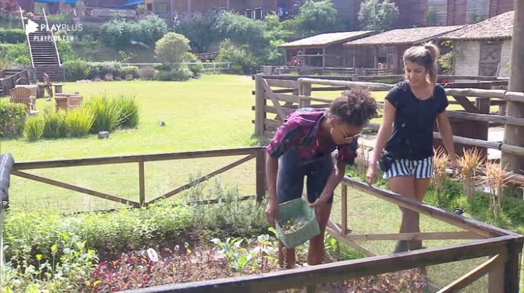 Esta semana, Sabrina Paiva é a responsável por cuidar da horta da sede. Sendo assim, Hari ensinou a função matinal para a amiga.