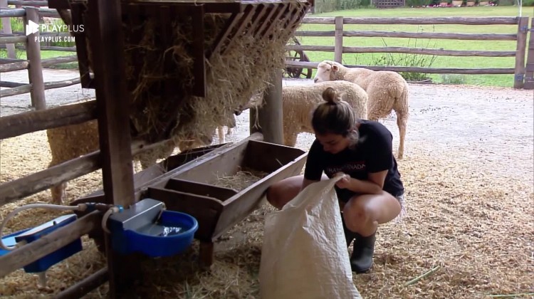 Thayse Teixeira acordou cedo, neste sábado (23). Responsável pelas ovelhas, a peoa organizou o curral da sede.