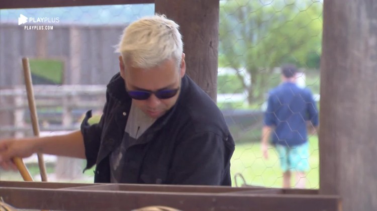 Além de humorista, Viny Vieira manda bem na música. Afinado, ele cantou o sucesso Suedehead , do Morrissey, enquanto limpava o galinheiro da sede, nesta terça-feira (19).