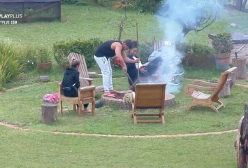 Lucas, Hariany, Sabrina, Rodrigo e Thayse decidiram fazer uma fogueira na área externa da sede. Os ...