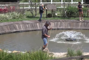 Rodrigo, Viny e Sabrina dão duro para limpar lago dos gansos