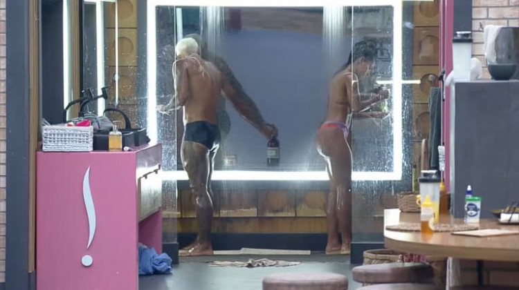 Dynho e Stefane conversam enquanto tomam banho na sede - A Fazenda 13