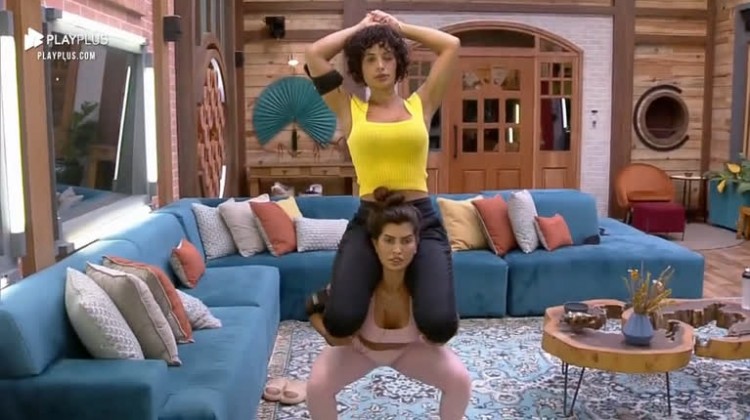 Influenciadora também levantou a amiga enquanto estava deitada