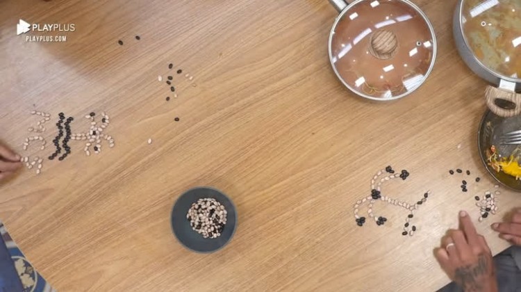 Para passar o tempo na sede, Dynho e Marina fazem desenhos com feijões - A Fazenda 13