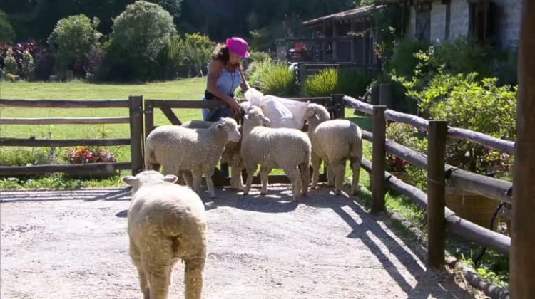 Solange faz carinho nas ovelhas durante as atividades rurais - A Fazenda 13