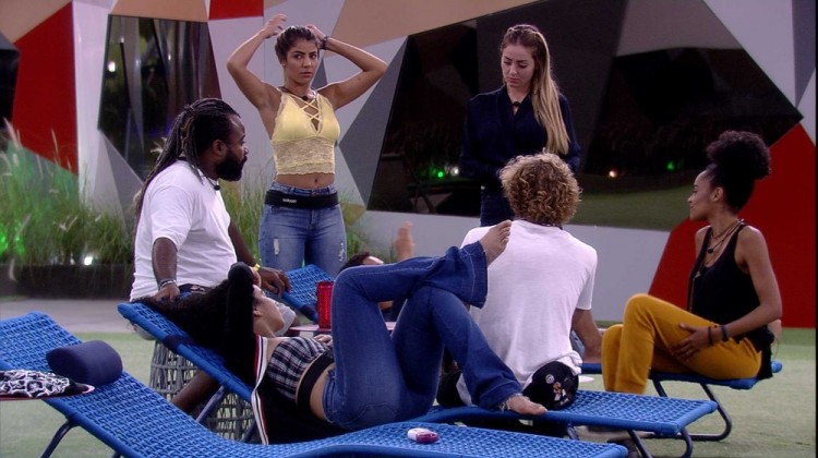 Gabriela, Rodrigo e Alan conversam na área externa com Danrley e Elana na área externa da casa. Elana comenta sobre o Tiago Leifert: "É muito fofinho o Tiago". Eles seguem falando sobre o que falou o apresentador durante o último contato com eles.