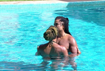 Depois de passarem a noite juntos, Aline e Diogo Almeida curtem um banho de piscina coladinhos, na...