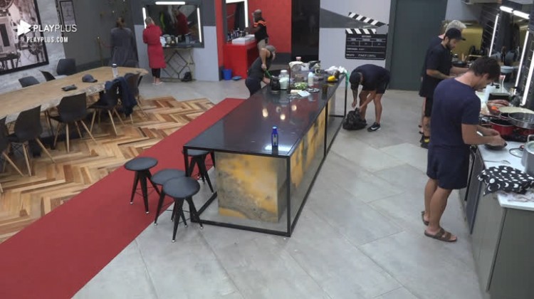 Enquanto os participantes organizam a cozinha, Leandro prepara o jantar