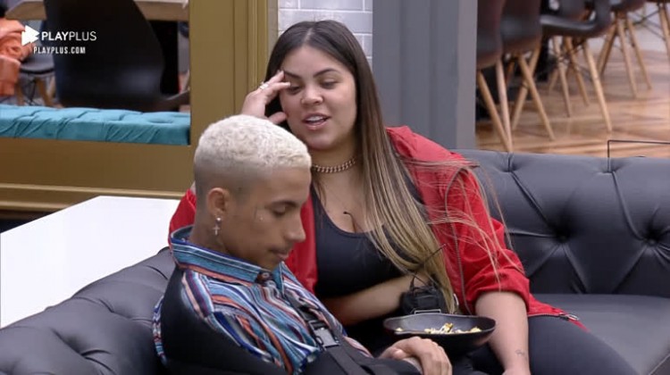Dupla se desentende em conversa no sofá da sala da Mansão