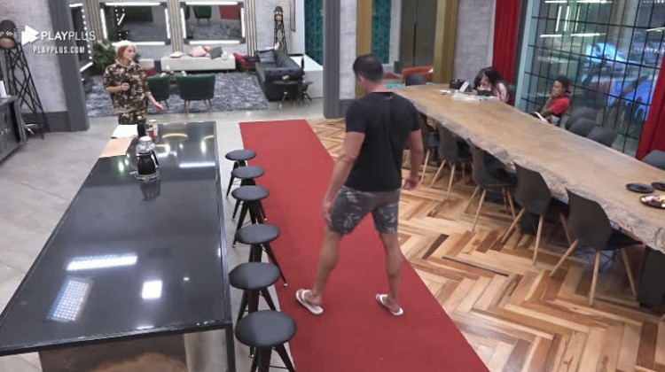 Li, JP, Deborah, Mari e Matheus conversam na cozinha da Mansão