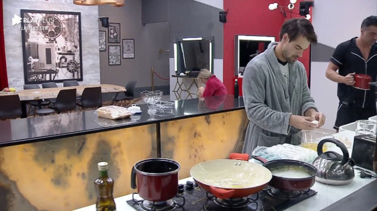 Leandro prepara ovos mexidos para os colegas de confinamento - Power Couple Brasil 5
