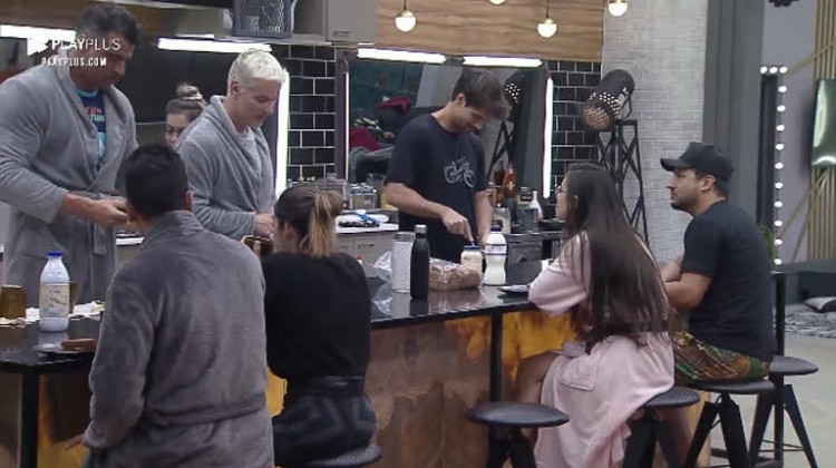 Thiago e Bruno dão seus palpites durante o café da manhã