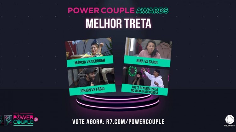 Ajude a eleger os melhores momentos do reality no Power Couple Awards, que conta com as categorias VT, Treta, Pós-Festa, Prova, Momento mais Engraçado, Casal mais Romântico, Casal Sabonete, Treta de Casal e Maiores Amizades.